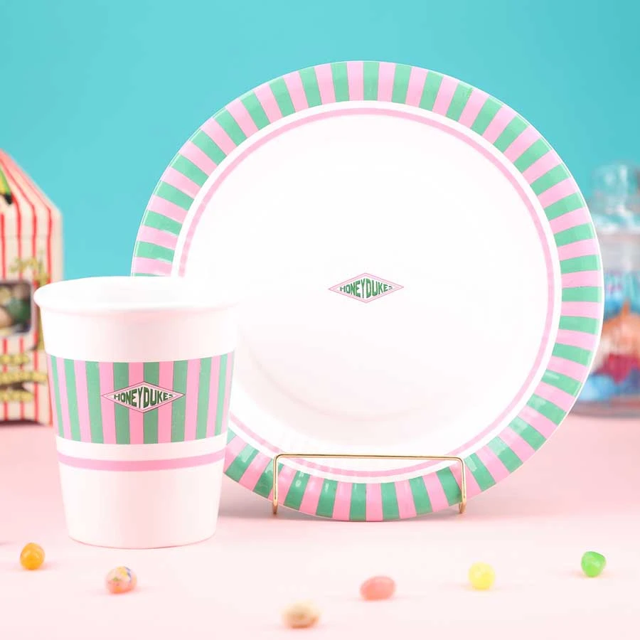 - Honeydukes’ symbol color, the green x pink color scheme, is kitschy and cute.